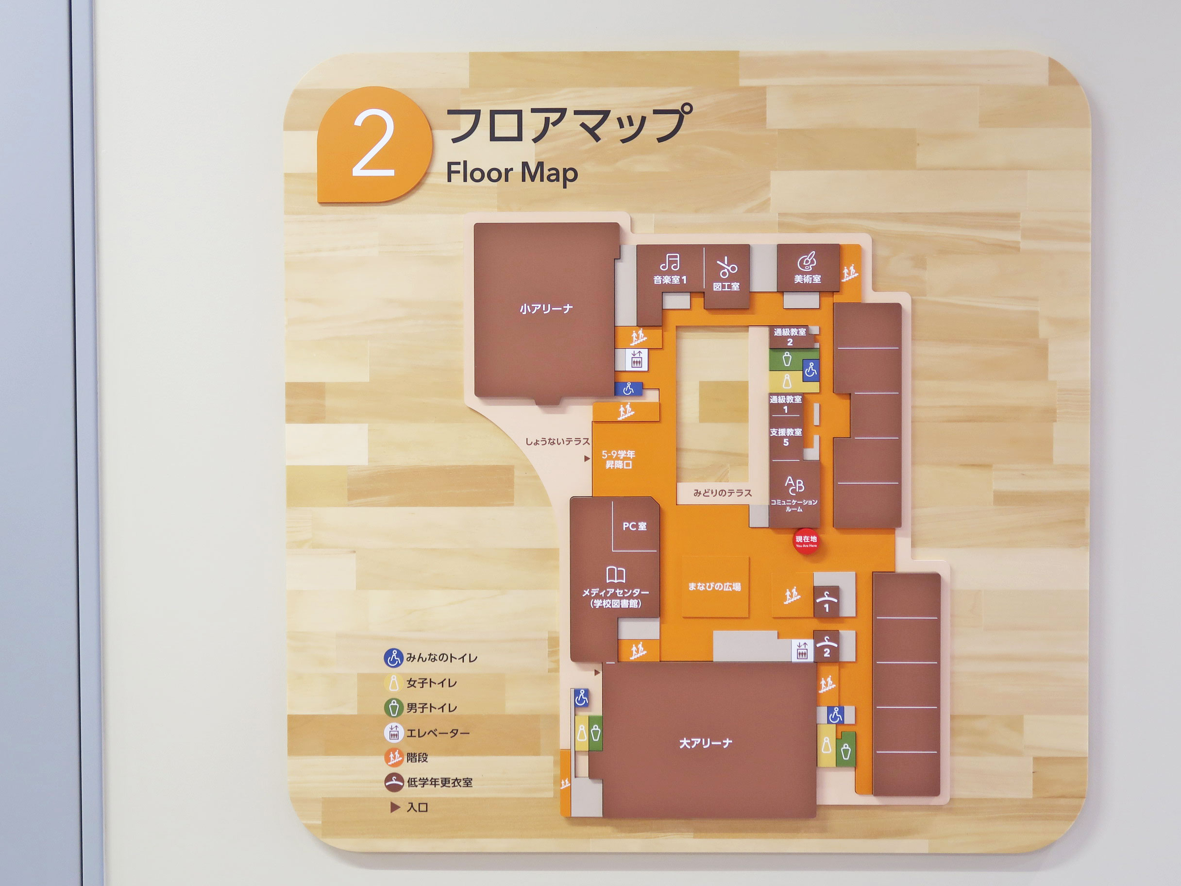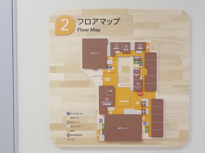 後編では、豪華な大階段や2つのアリーナ、そして自校調理の給食室などがある2階と1階をレポートします。