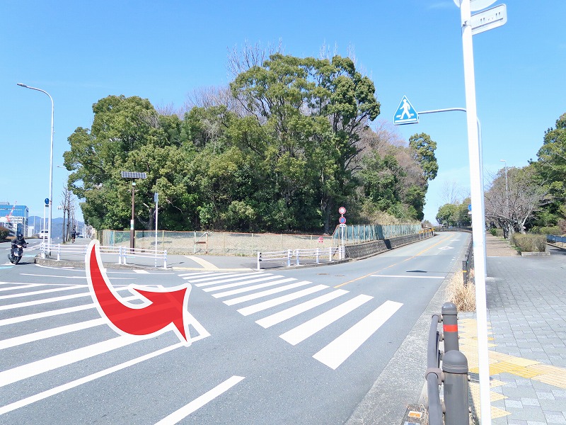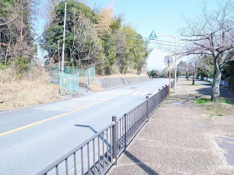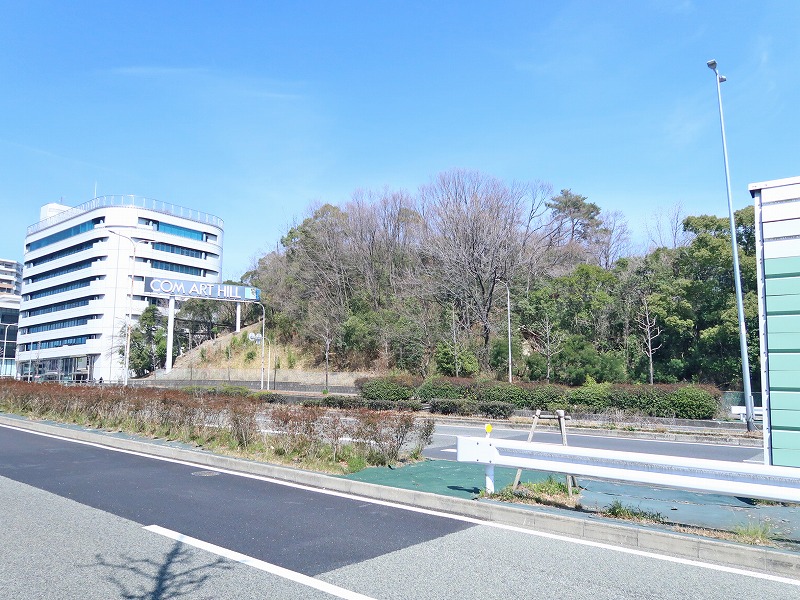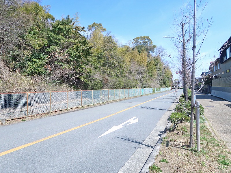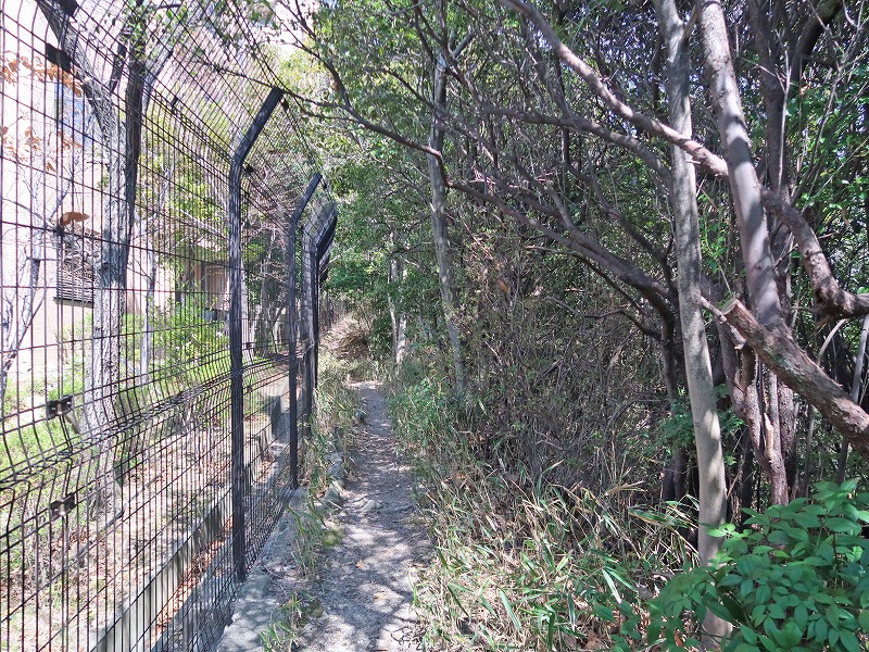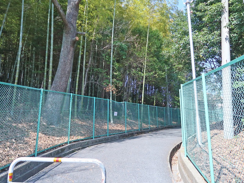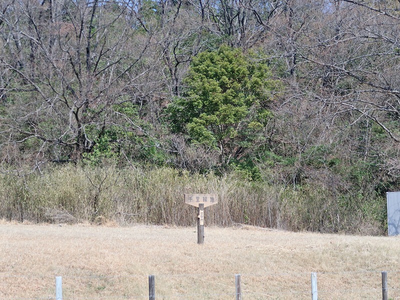千里緑地は道路の向こう側に続いてますが、柵があって「立入禁止」の文字が。