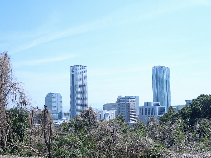 振り返ると、千里中央のビル群が一望できます。