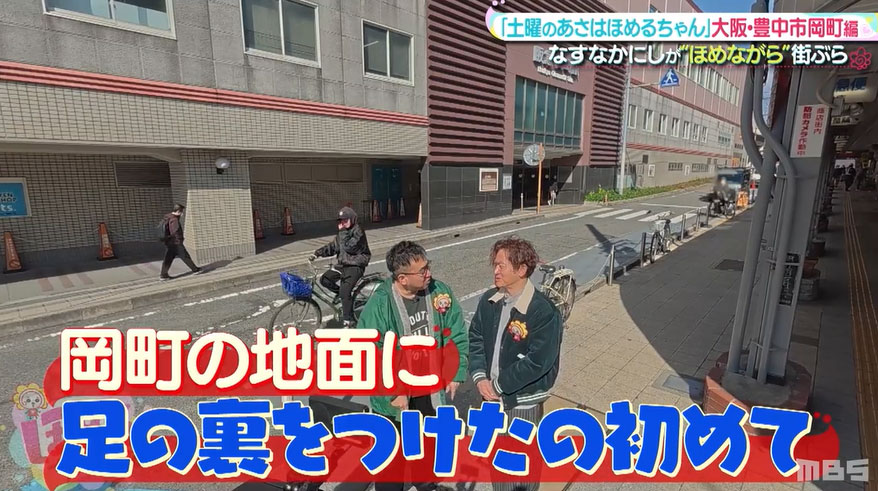 こちら、人気お笑いコンビ「なすなかにし」のお2人が関西の気になるエリアを「ぶらぶら」しながら「褒める」早朝番組。