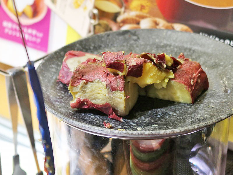 ご褒美スイーツは「炭火炙り焼き芋」。遠赤外線の効果で、柔らかく甘く仕上がっています。