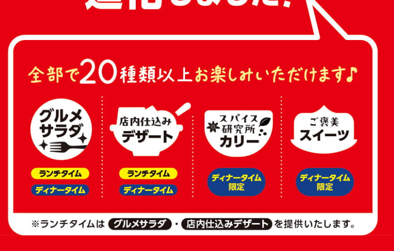 「スパイス研究所カリー」と「ご褒美スイーツ」はディナータイムのみの提供です