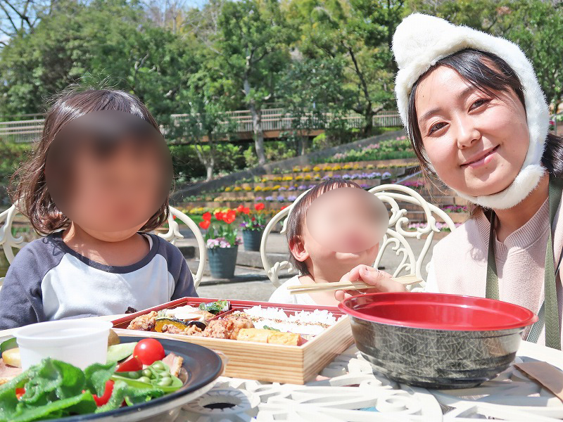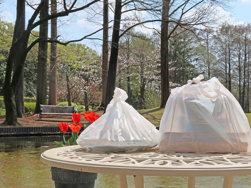 受け取ったごはんを持って、いざ服部緑地都市緑化植物園へ向かいます。