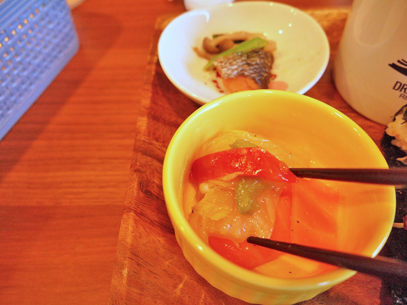 「鮭きのこ炒め」も、バターの風味が効いてておにぎりとも合うわ~。