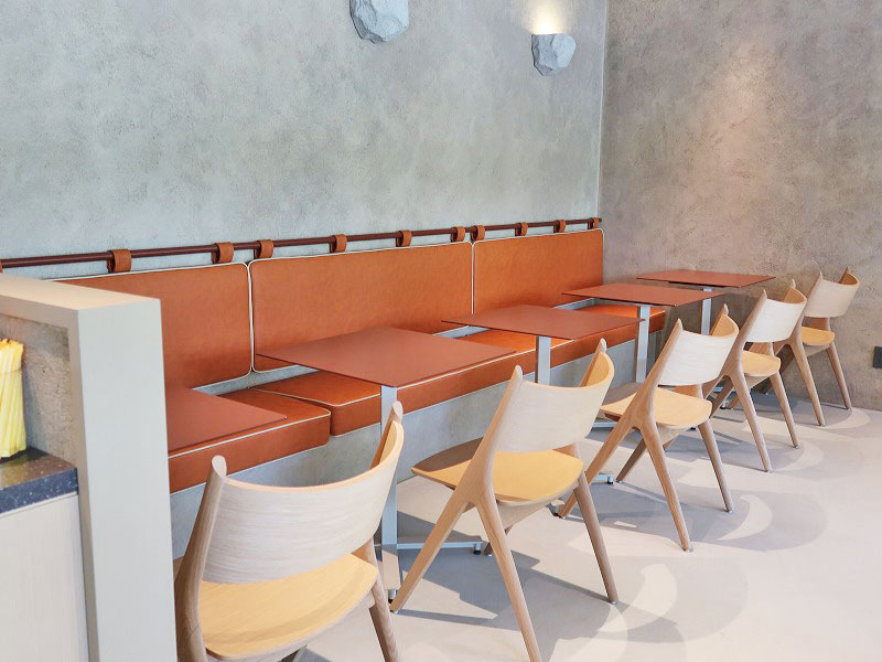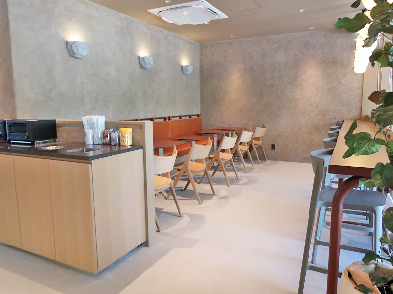 落ち着くアースカラーでまとめられた店内は