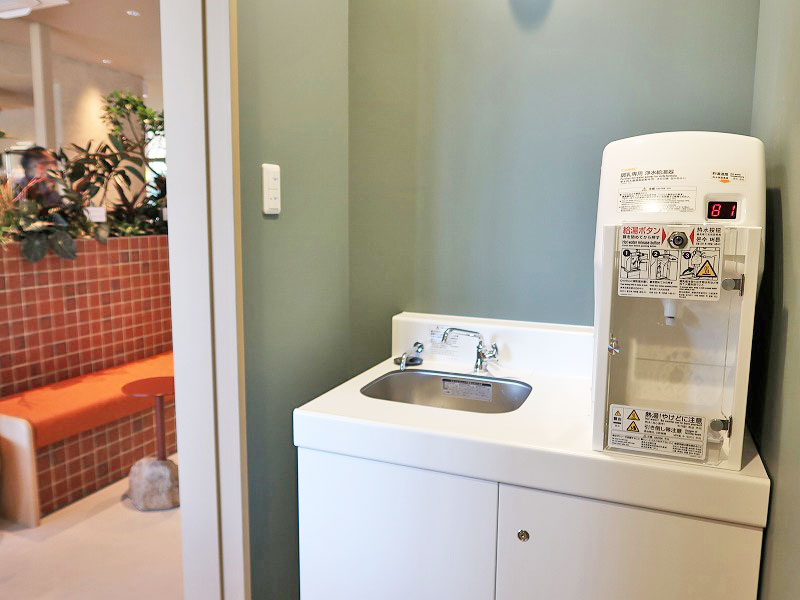 ベビーケアルームだ!入って左には、ミルクに使えるお湯のサーバーがあり