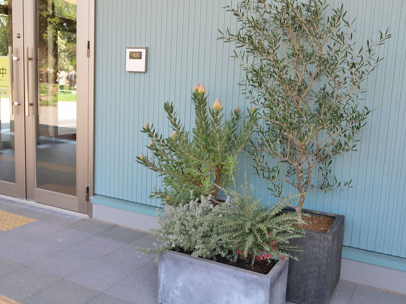 植物がたくさん飾られています。
