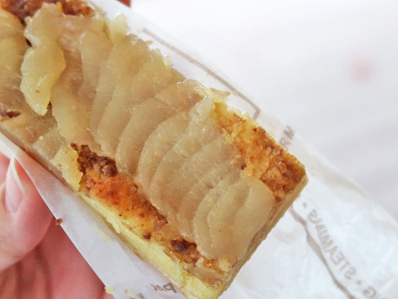 「洋ナシのタルト」は、甘さ控えめのしっとりタイプ。ワンハンドで食べれるので、テイクアウトもオススメですよ。