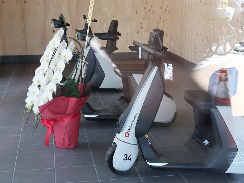 こちらは、園内を走る新型モビリティ(座り乗りタイプ)のステーションだそう。