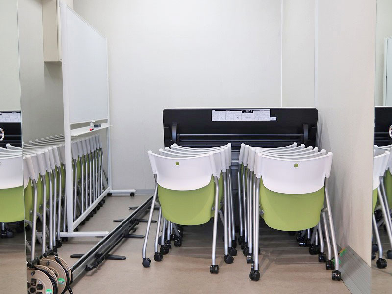 そして鏡の裏には椅子やホワイトボードが収納されているので、会議室としても使えるんだって。