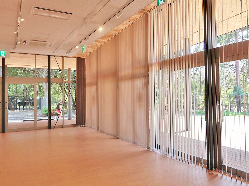 ガラスの向こうには服部緑地の緑が見え、さんさんと光が差し込み
