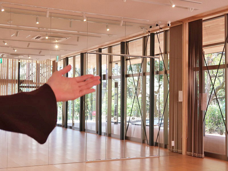 正面はガラス張りのスタジオ。