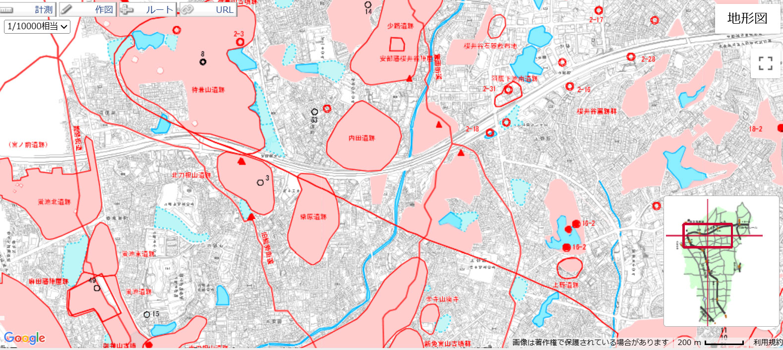 ※「地図情報とよなか」より引用(写真中央が今回の「内田遺跡」です)/小堀さん「とはいえ、こんなにしっかり出てくるのは年2・3ヶ所ぐらいなんですが」