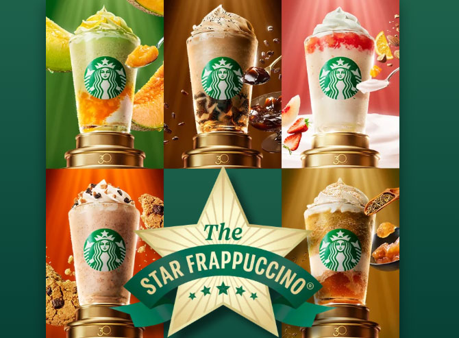 続いて「スターバックスコーヒー」では、5種類の名作フラペチーノ®が時代を超え、さらにおいしくなって登場していますよ。