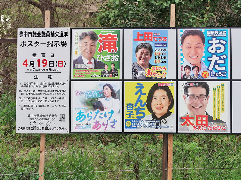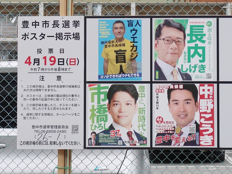 「豊中市市長選挙」につきましては、前回2022年開催時立候補者が1名だけのため無投票に終わっています。なので、4年ぶりに複数の立候補者がいる市長選となります。