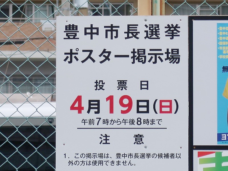 4月19日(日)に「豊中市長選挙・市議会議員補欠選挙」の投開票が行われますよ。