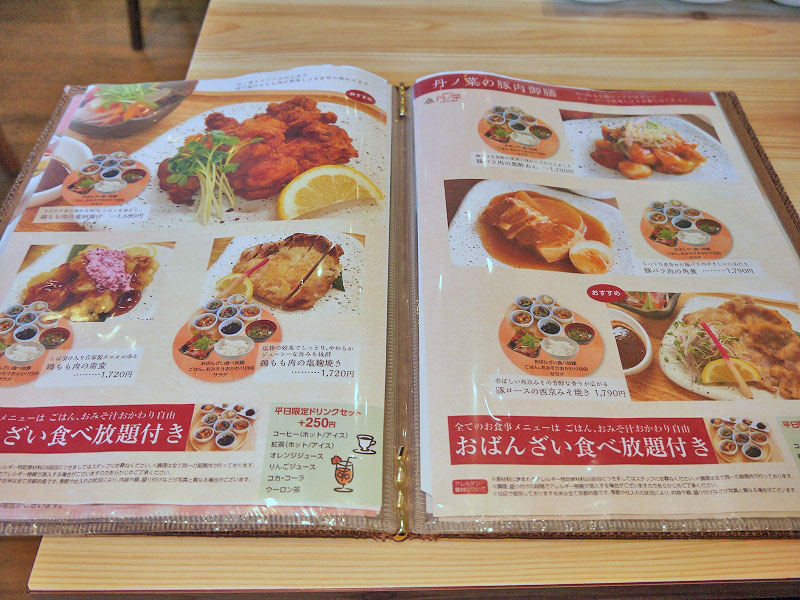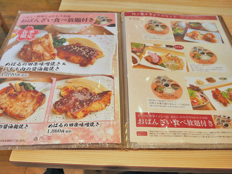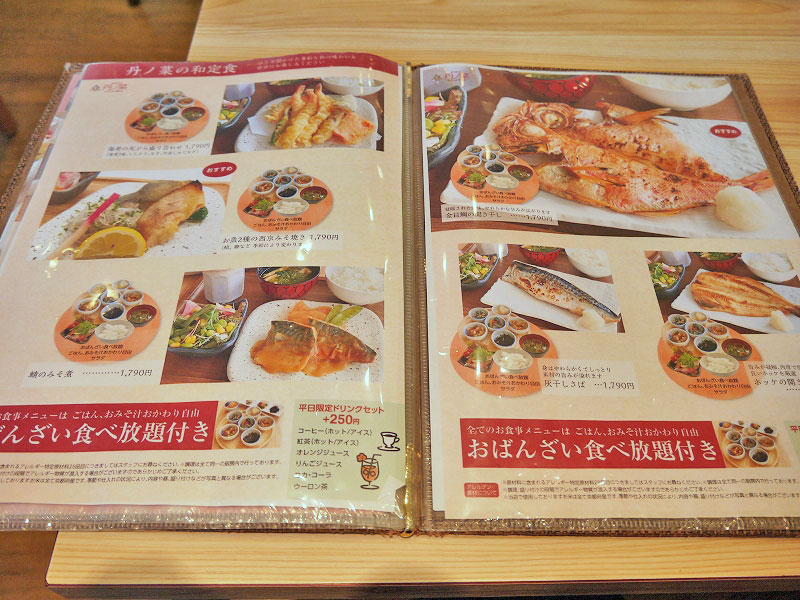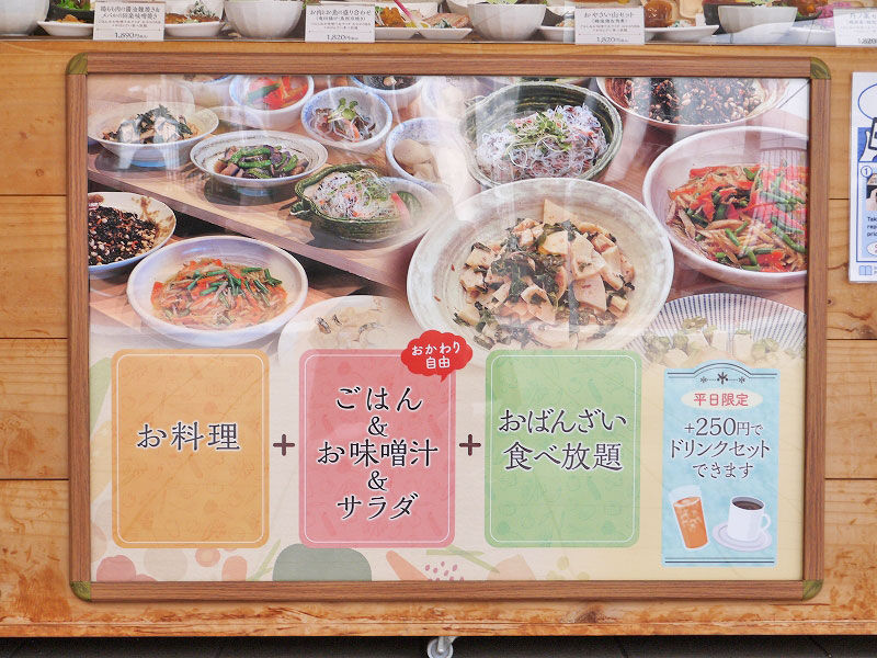 メインメニューを注文したら、おばんざい食べ放題、ご飯・お味噌汁もおかわり自由なんですね。※タップorクリックで拡大
