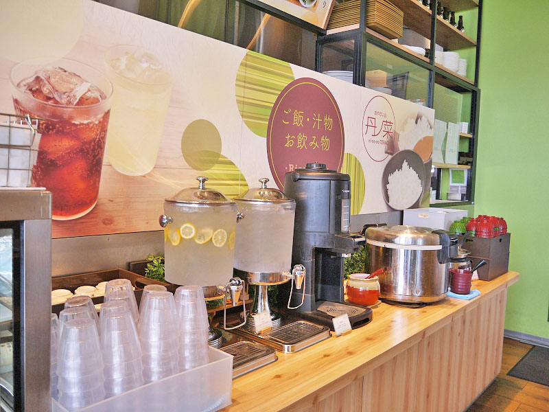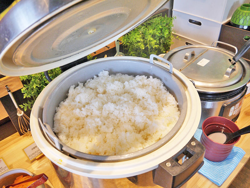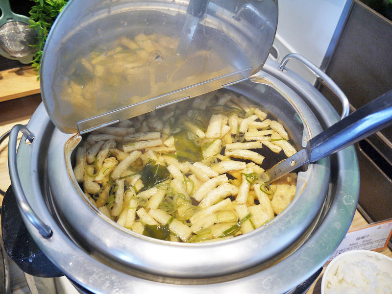 次はご飯、お味噌汁、ドリンクのエリアへ。
