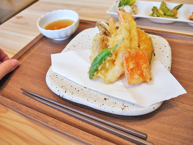 「海老の天ぷら盛合わせ、お待たせしました~」