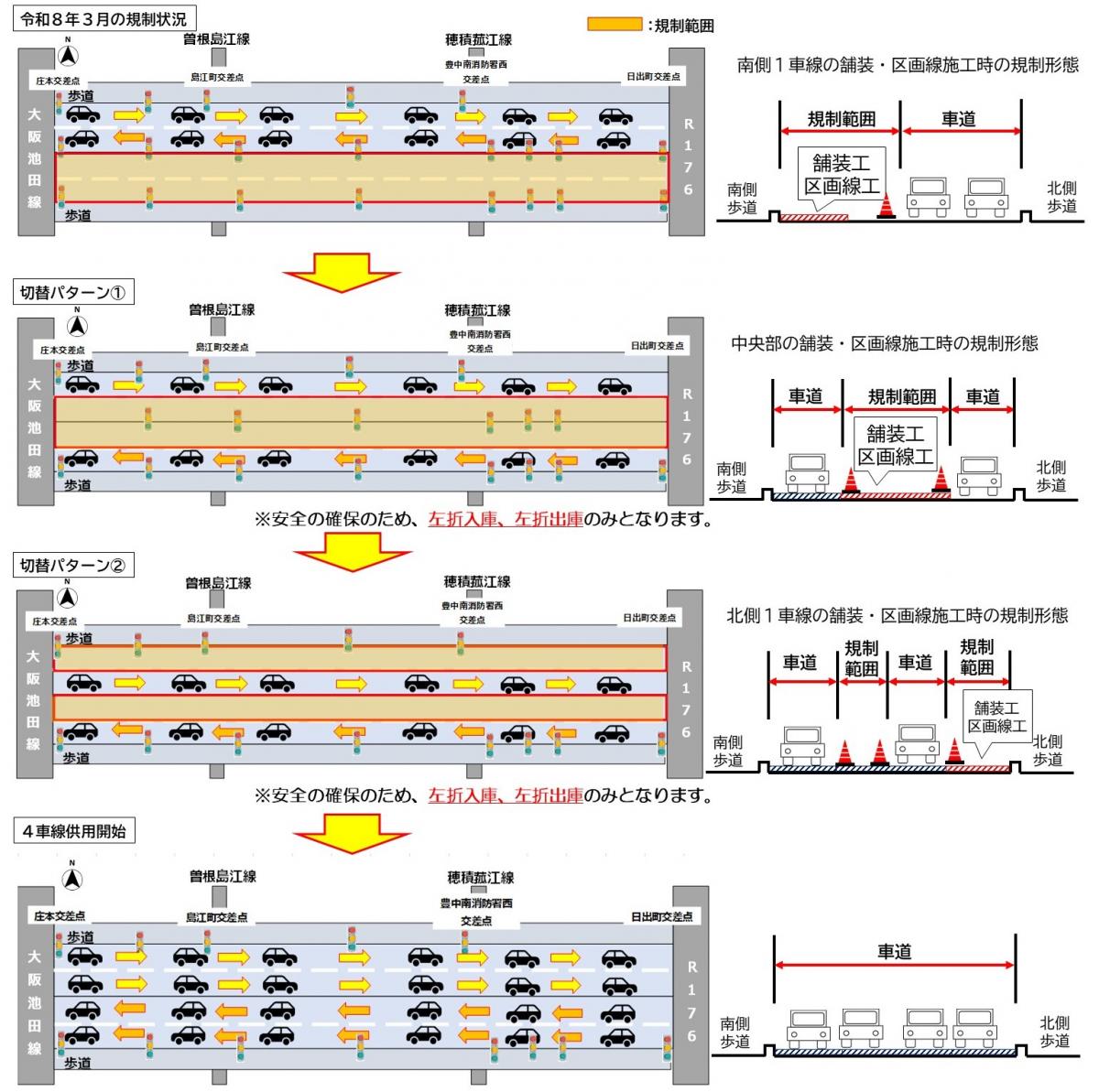 その間通れる車線が複数回変わるようなので