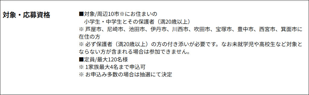無料招待の対象は「大阪国際空港(伊丹)周辺10市に住む小・中学生と、その保護者」で、豊中市も対象に入っていましたよ!