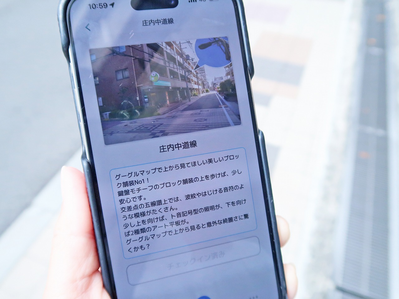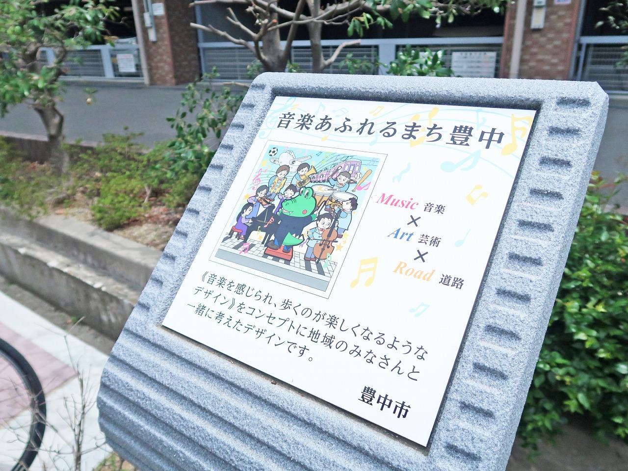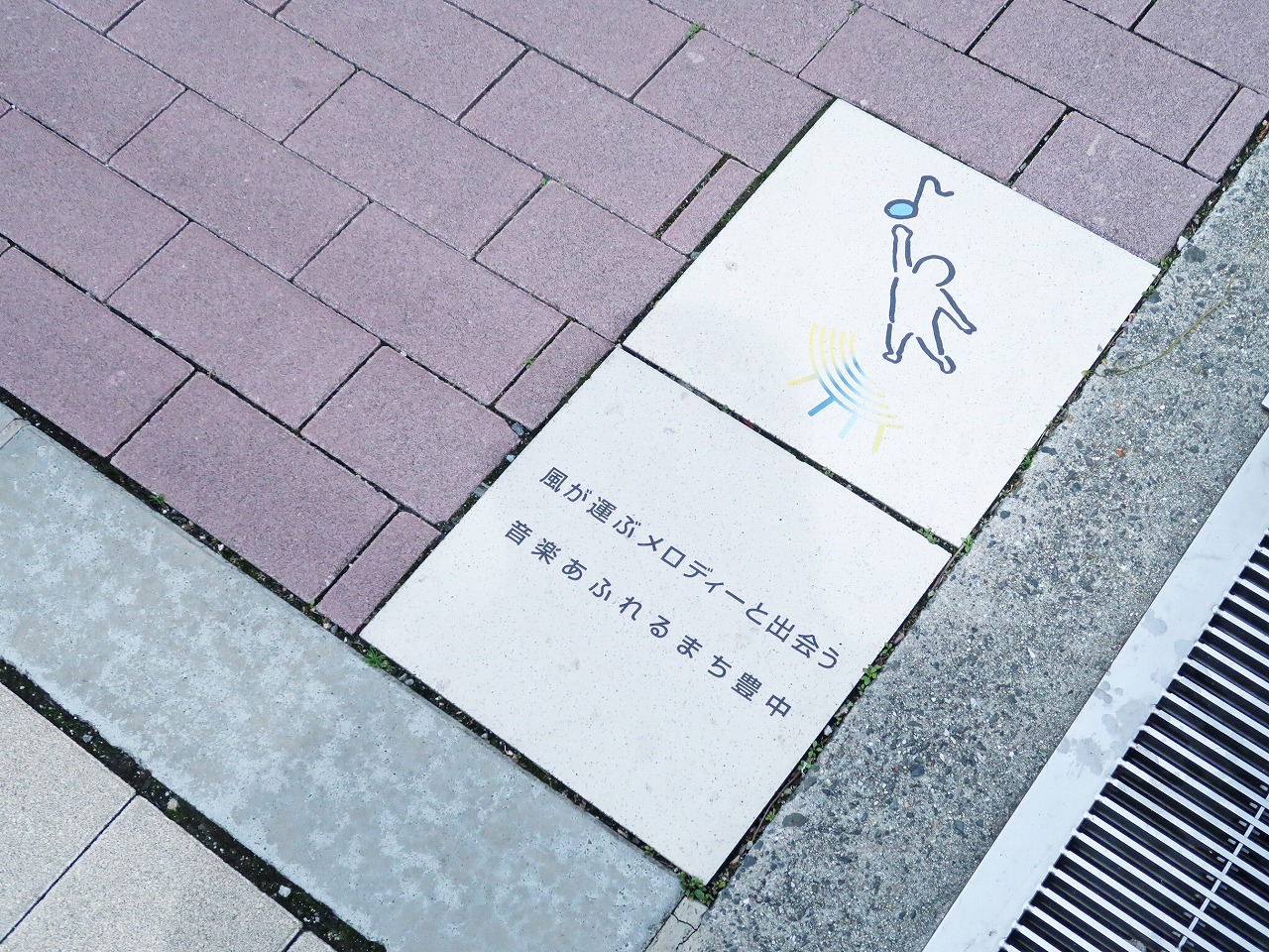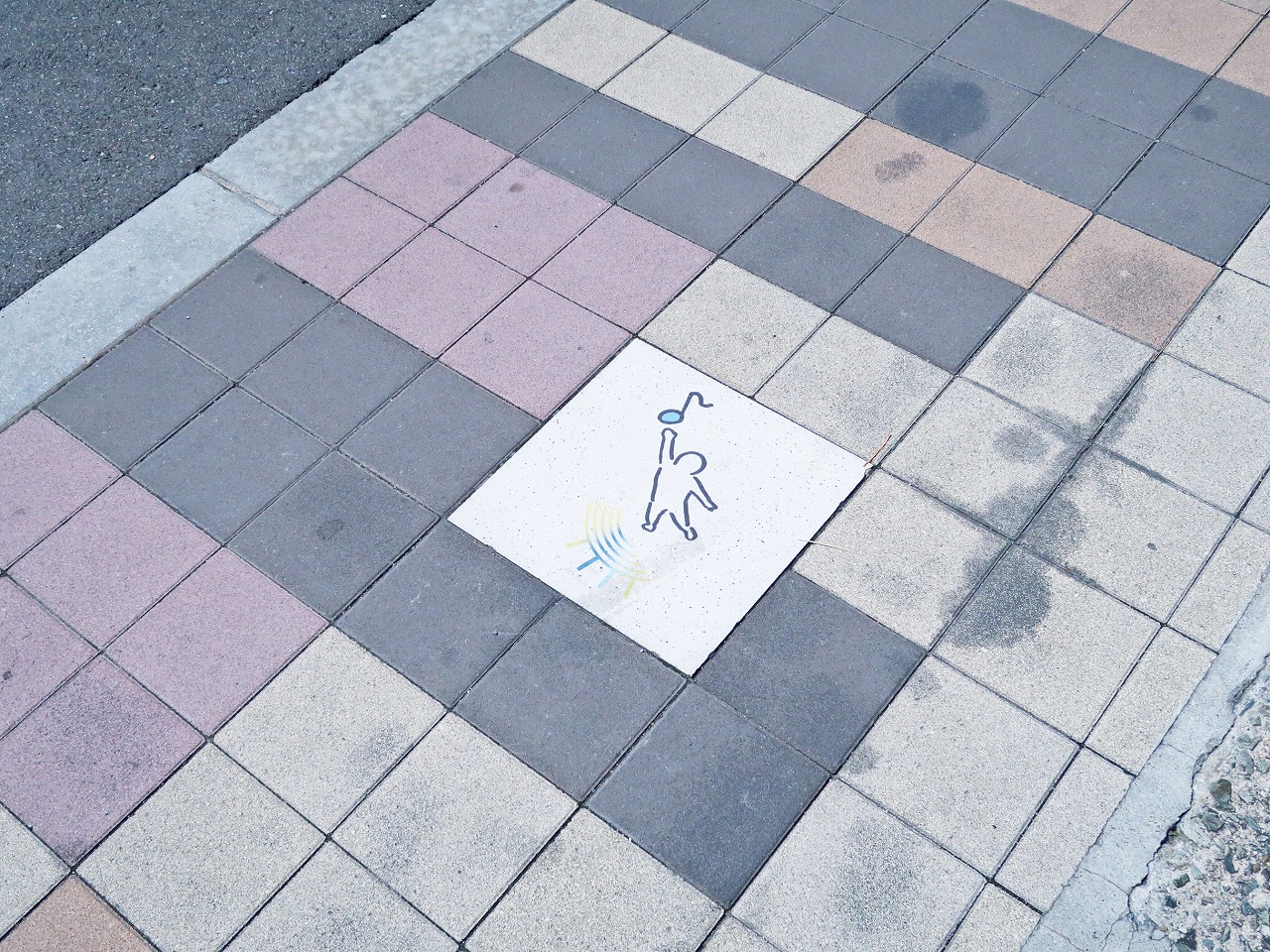 スタンプを押せた場所から20mほど離れた交差点に、五線譜のブロック舗装があって
