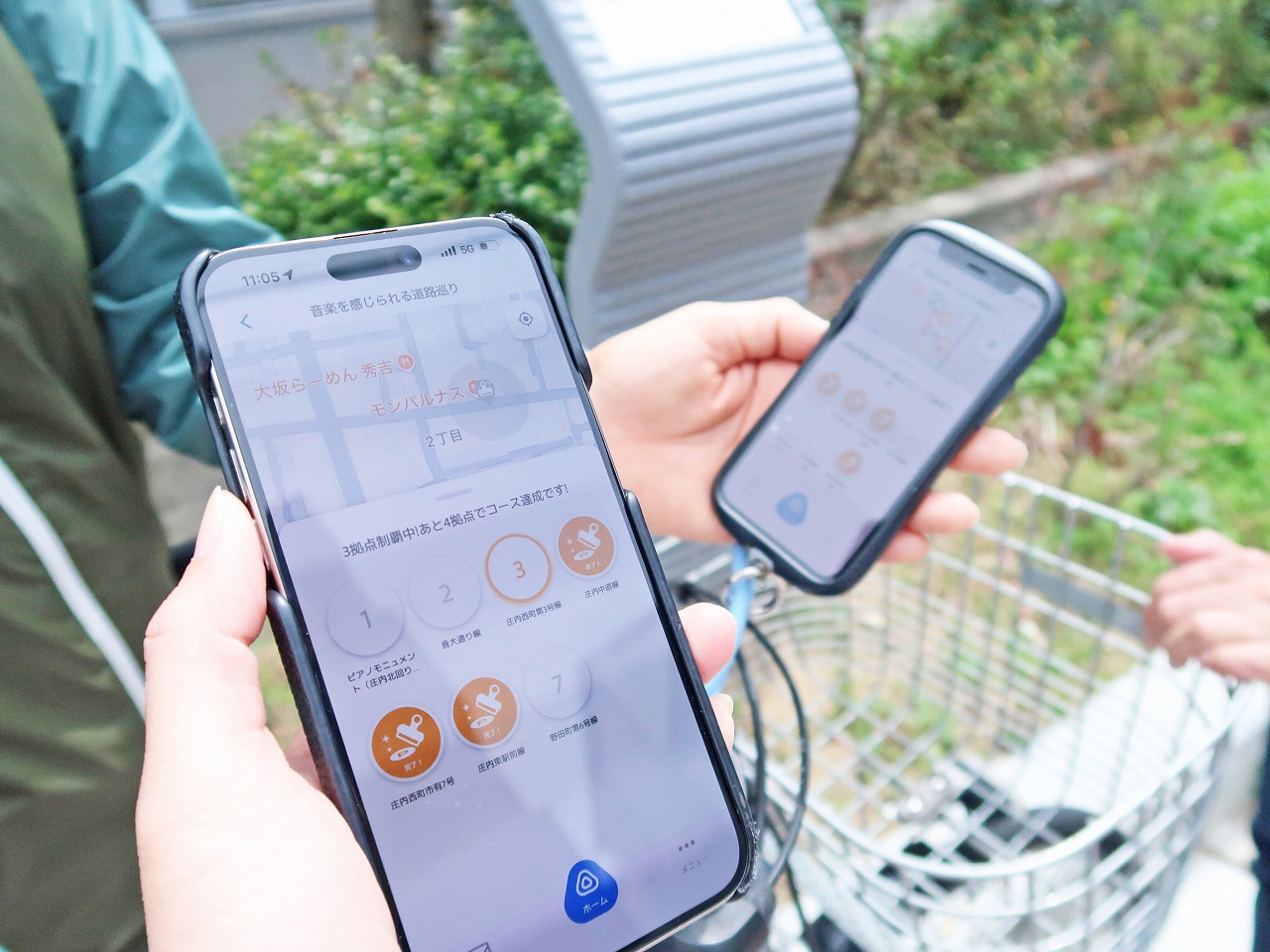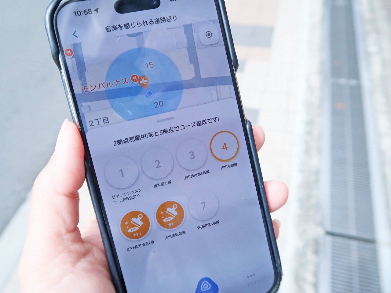 アプリの位置情報が反応してくれる場所まで、ウロウロ微調整して