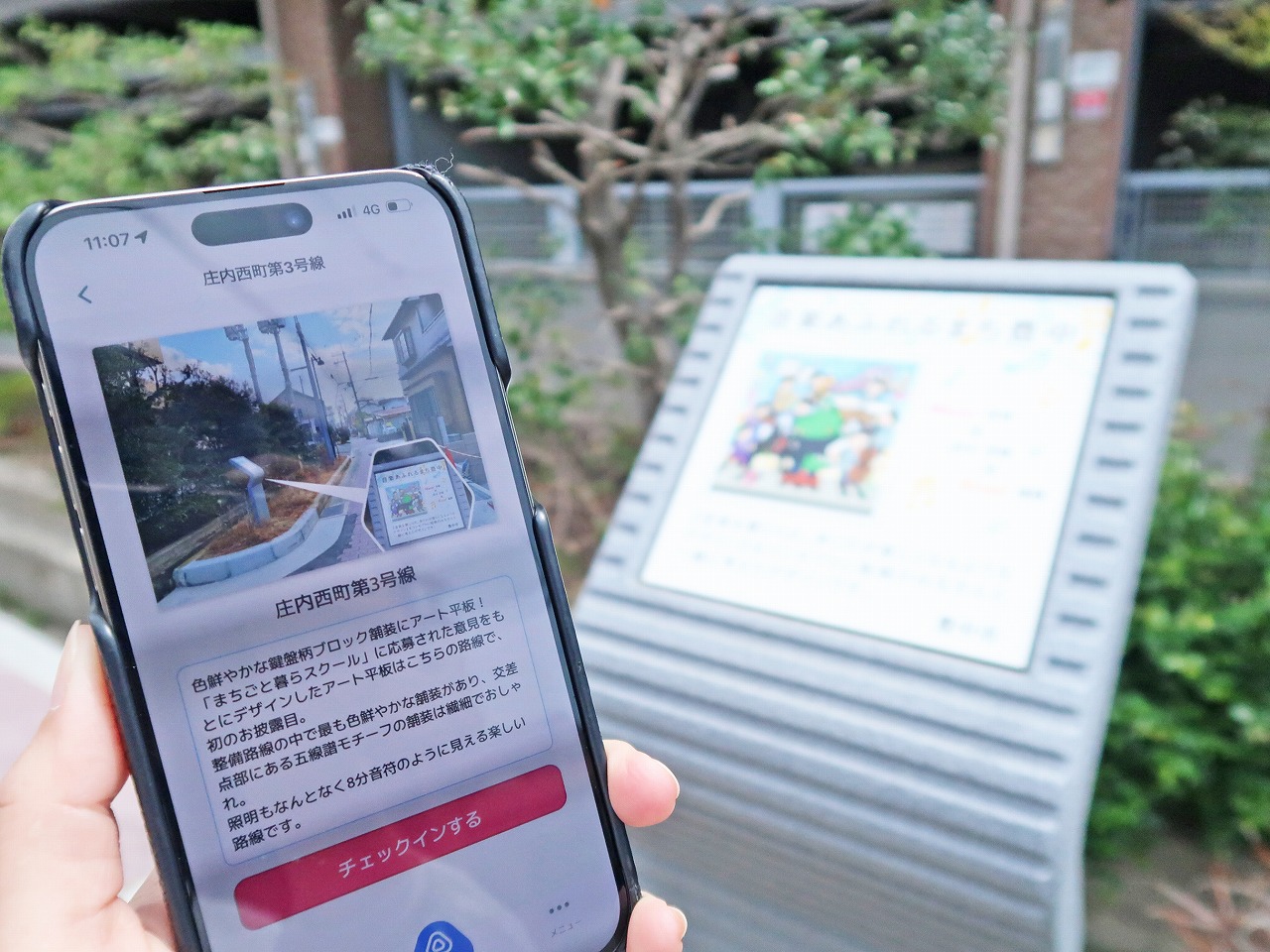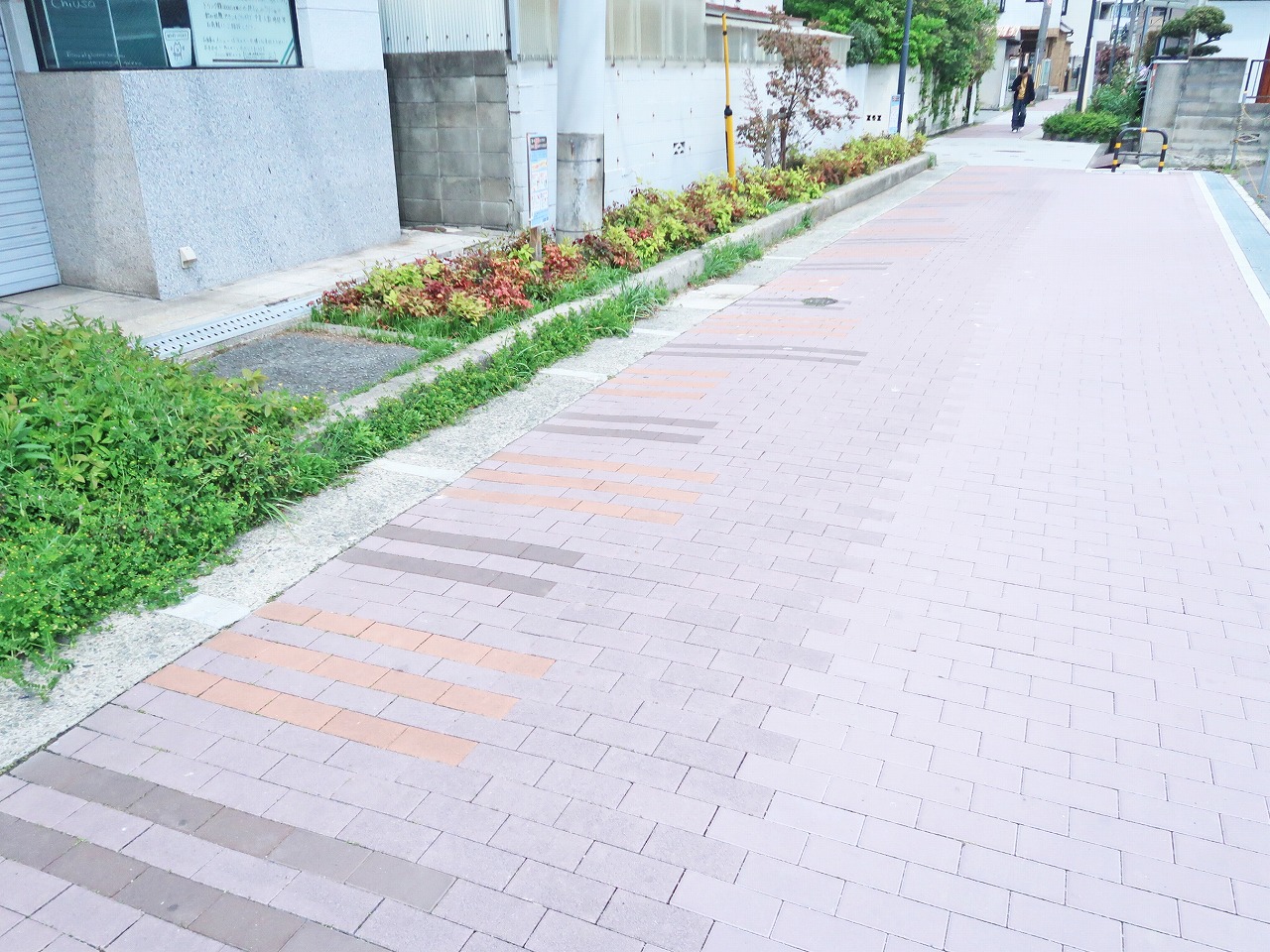 ※ブロック舗装の模様は地域の人も一緒に考えたデザインなんだって。道路の模様を考えるなんて、なんだかすごいね