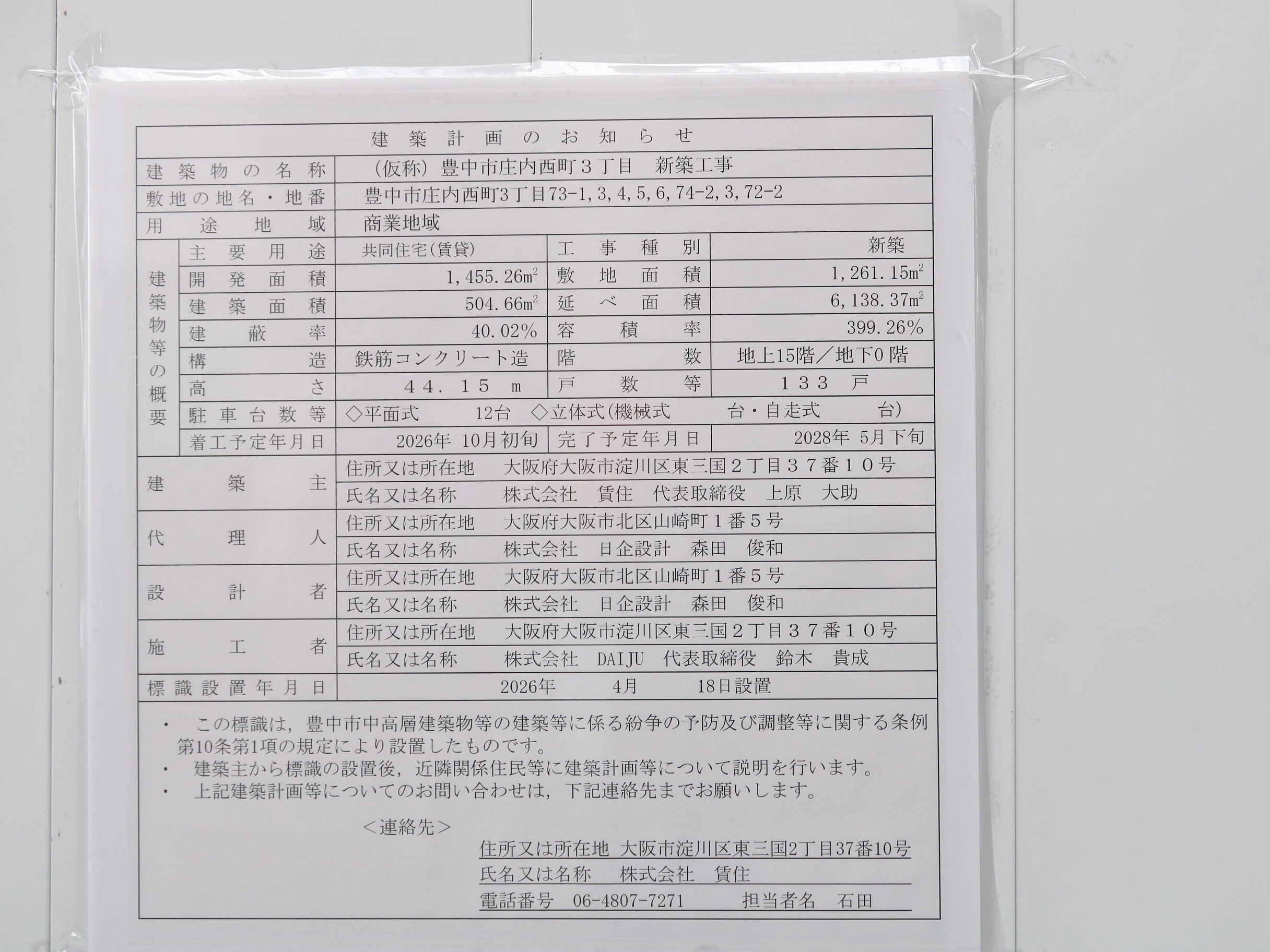 庄内西町にある「庄内ウエスト商店街」内にマンションができるようです。
