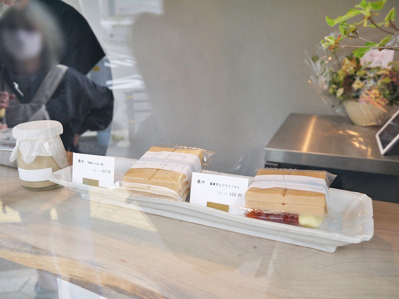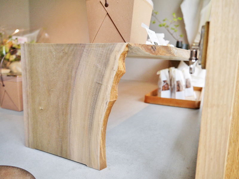 テイクアウト専門ということで小さなお店ですが、木の展示棚は「カランセ」のものだったり