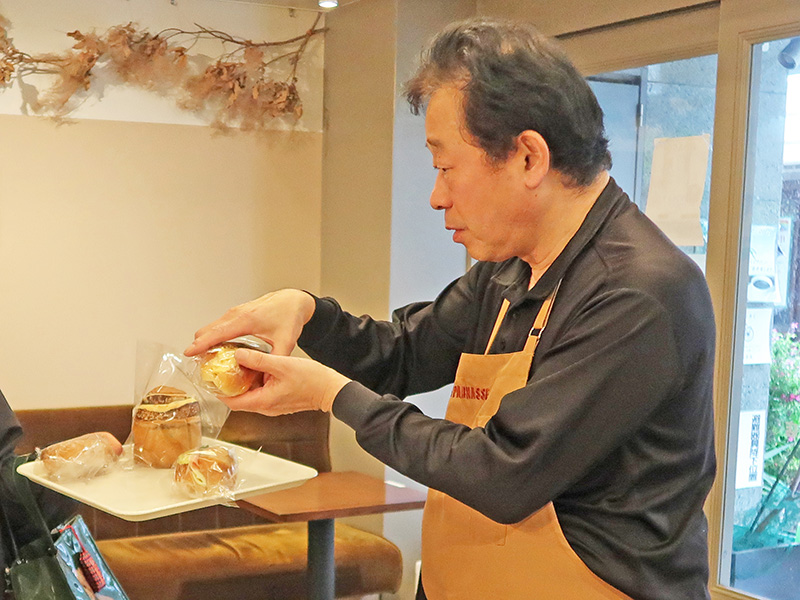 ※接客する古角社長ーーピロシキはずっと同じ味なんでしょうか?少しずつ時代に合わせて変えたり?