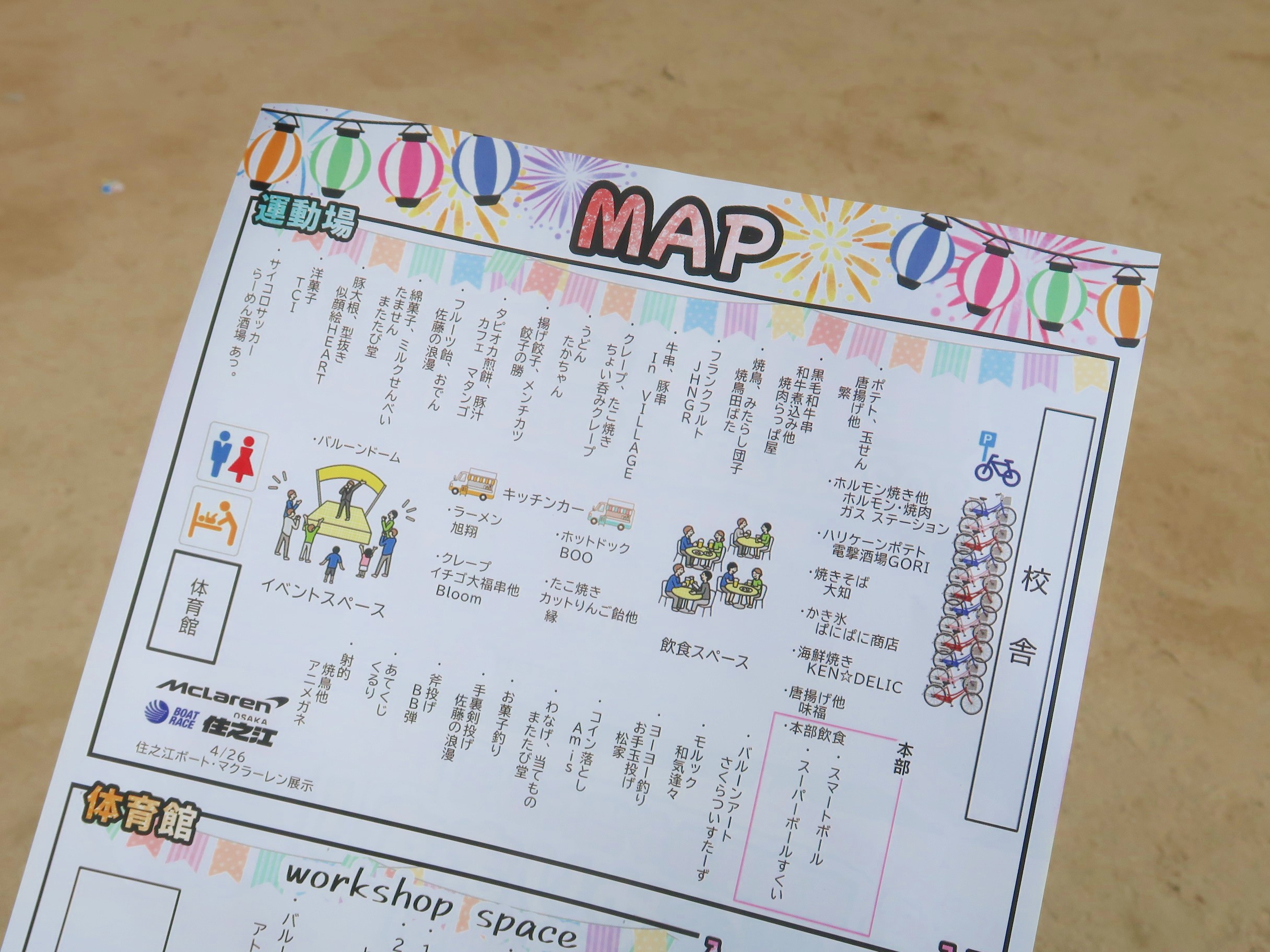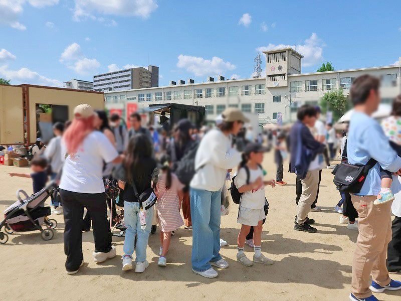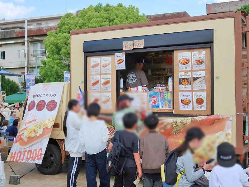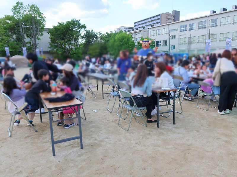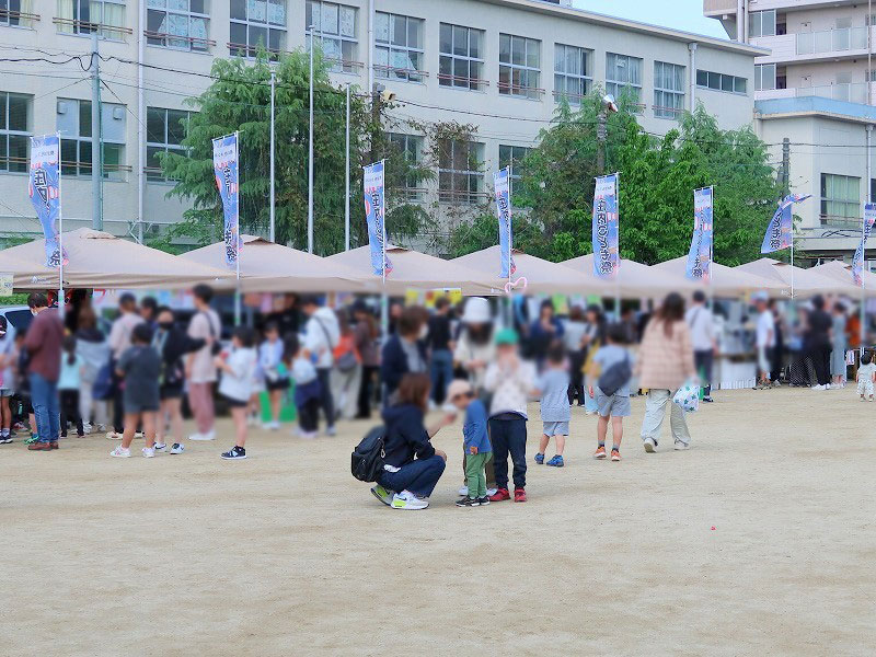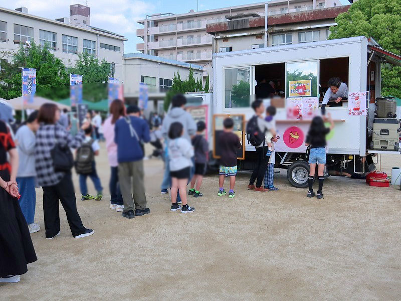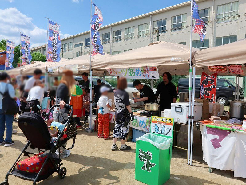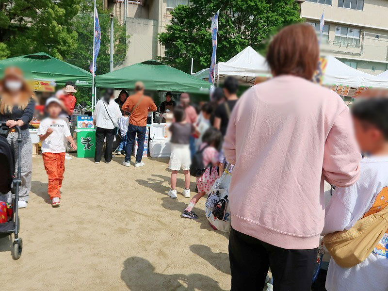 会場は、飲食ブースやキッチンカー、遊びコーナーなどがある運動場と