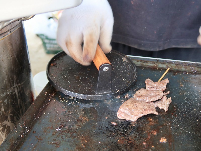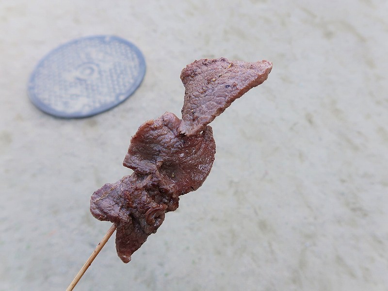 お行儀悪いですが立ち食いしましょう。(これも祭りの醍醐味よね)。うん、牛串は間違いない味!ウマ~。