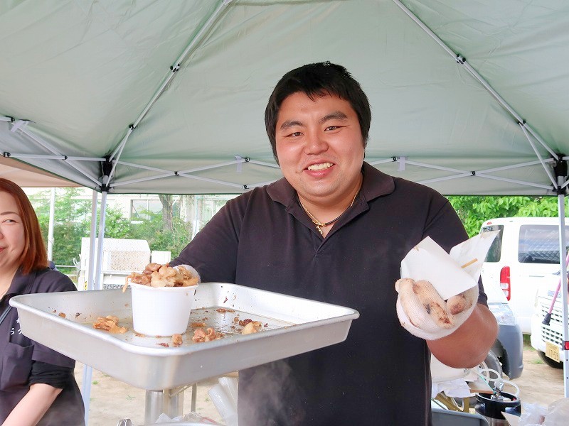 お、良い香りがする。こちらはWEST商店街にある「焼肉らっぱ屋」の屋台ですね。ここに決めた♪