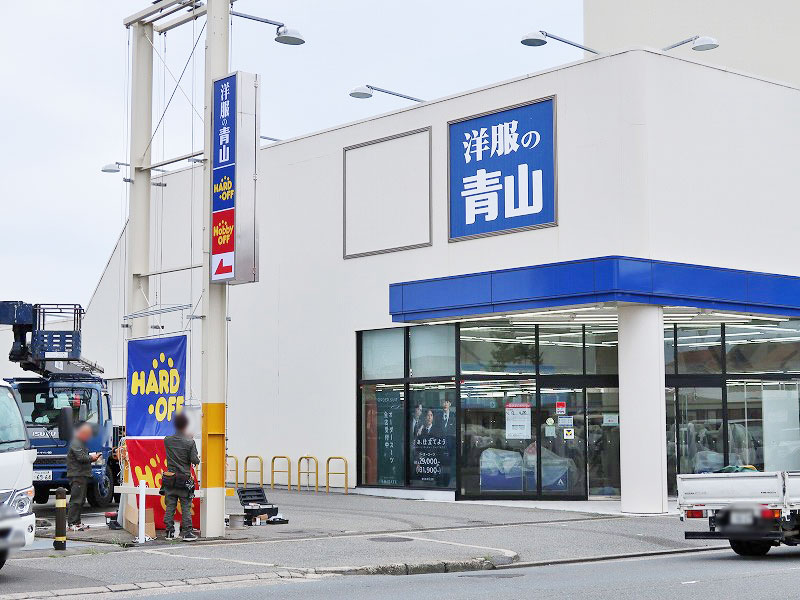 小曽根にある「洋服の青山」の中に、中古品買取販売店「HARD OFF(ハードオフ)」ができるようです。