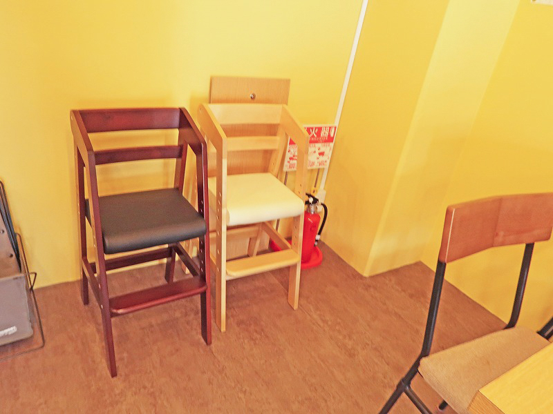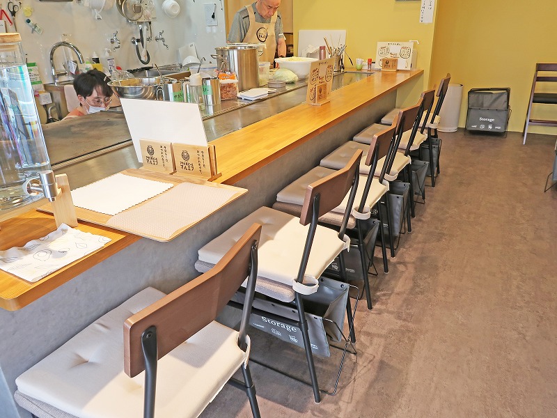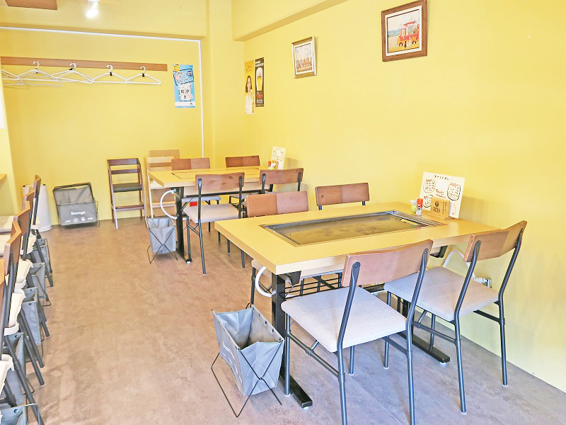 店内は元気なイエローの壁紙で、明るい雰囲気。4名がけテーブル席が2席と