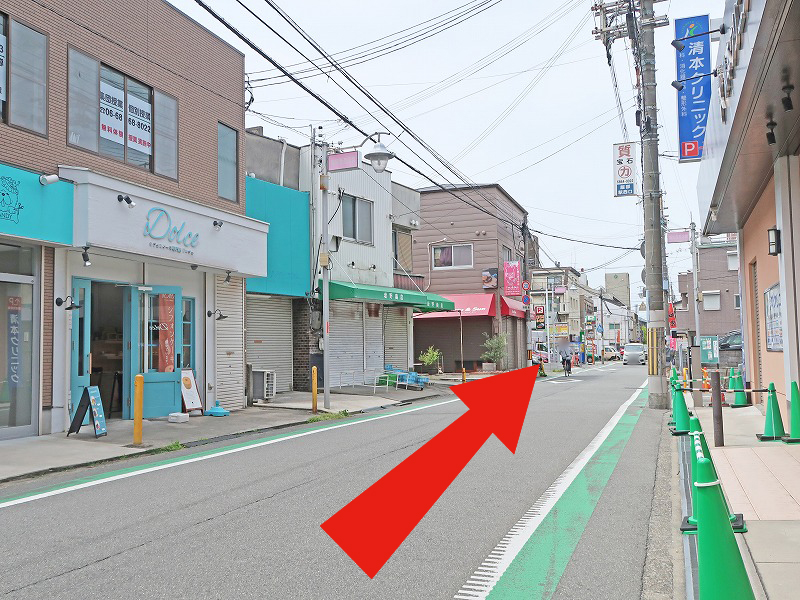 シフォンケーキ専門店「Dolce(ドルチェ)」さんから100mくらい西にありました。