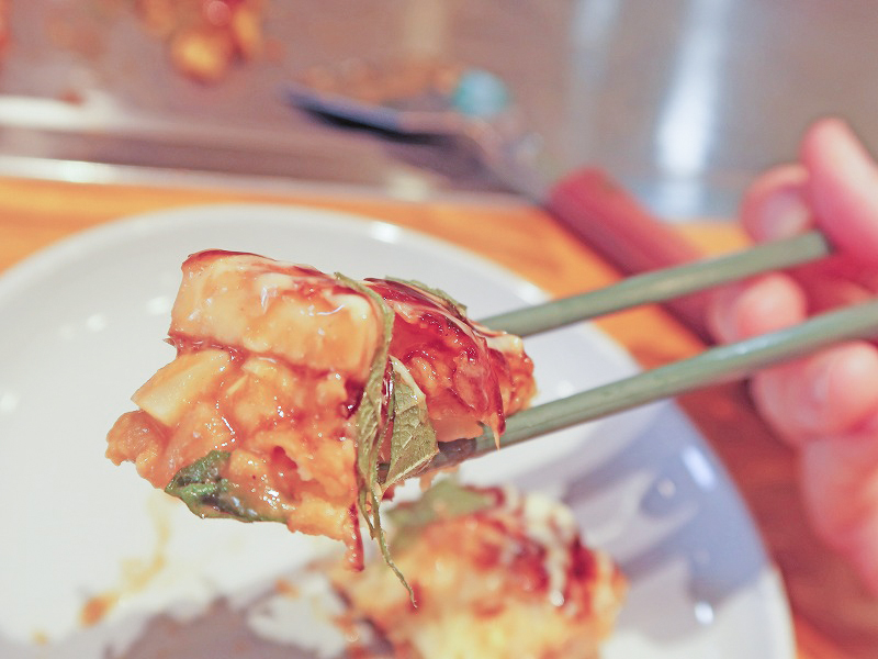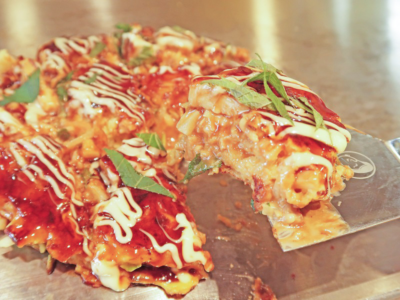 おお、生地に入った大根のおかげで、少ししゃきっとした食感!海鮮とよく合う!