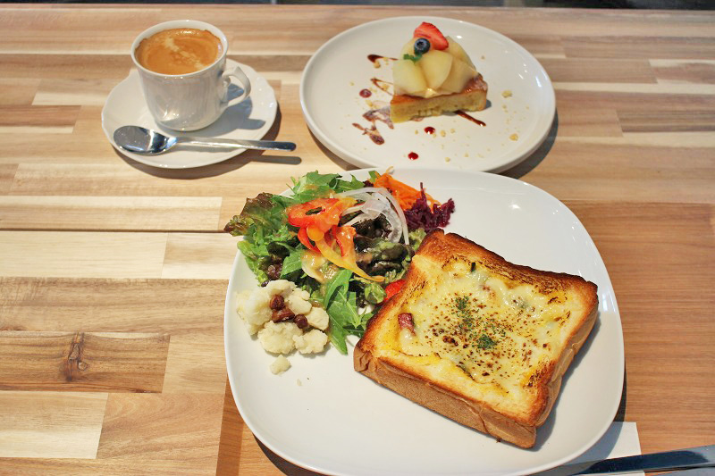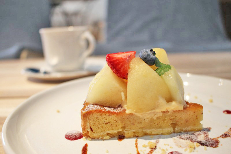 私は店員さんオススメの、食パンキッシュと洋梨のタルトを注文しました!
