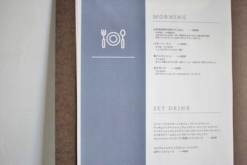 店内でいただけるフードメニューはこちら!モーニングは手軽にいただけそうなメニューが多いですね。