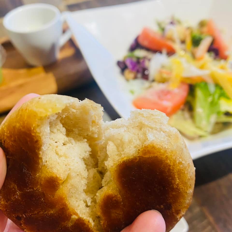 ボリューミィなサラダ、なかなか減らないんですよ(汗)。パンをおかわりするつもりが、気がつけばお野菜だけでお腹いっぱいに。野菜不足には嬉しい満腹感!
