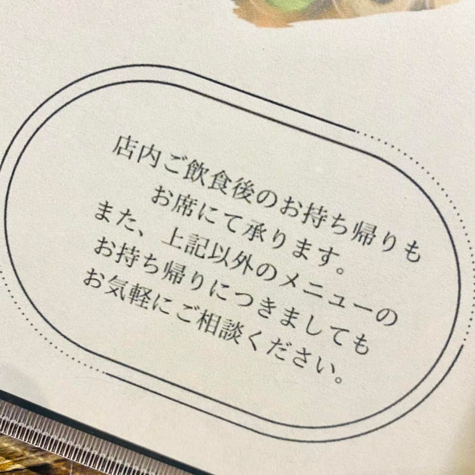 ちなみに、食べているものの持ち帰りにも対応していただけるそう。「思いやり」!!!