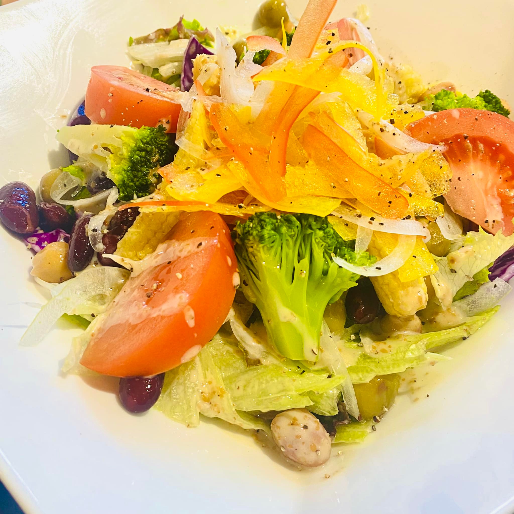 「ヴィーガンサラダ」は大きな深鉢に多種類の野菜がおよそ150g!