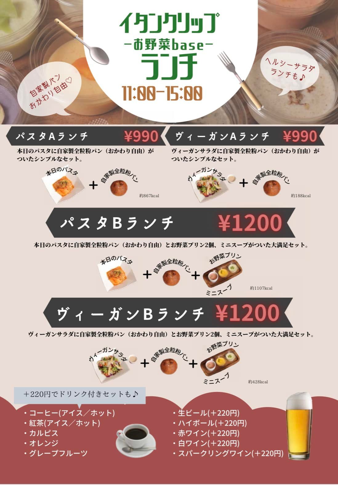 パスタorサラダ。ヴィーガンの方とそうでない方が同席される時も、気を遣わないラインナップですね♪ワタクシはヴィーガンではありませんが、野菜不足が気になる今日この頃。。。せっかくなので、「ヴィーガンBランチセット」をお願いします~!