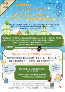 ![]() | アンサンブル・サビーナ まちづくりコンサート〜冬の自然と暮らし〜 @千里文化センターコラボ |
