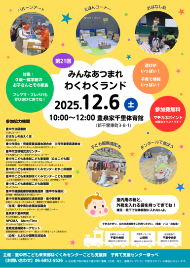 ![]() | みんなあつまれわくわくランド @豊泉家千里体育館 |