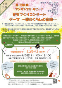 ![]() | アンサンブル・サビーナまちづくりコンサート〜春の暮らしと音楽〜 @千里文化センターコラボ |
