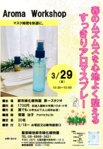 ![]() | 春のムズムズを心地よく整えるスッキリアロマスプレー @都市緑化植物園 |