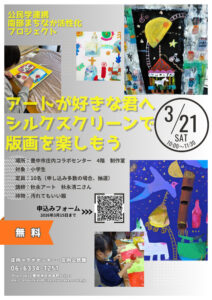![]() | アートが好きな君へ シルクスクリーンで版画を楽しもう @庄内コラボセンター |