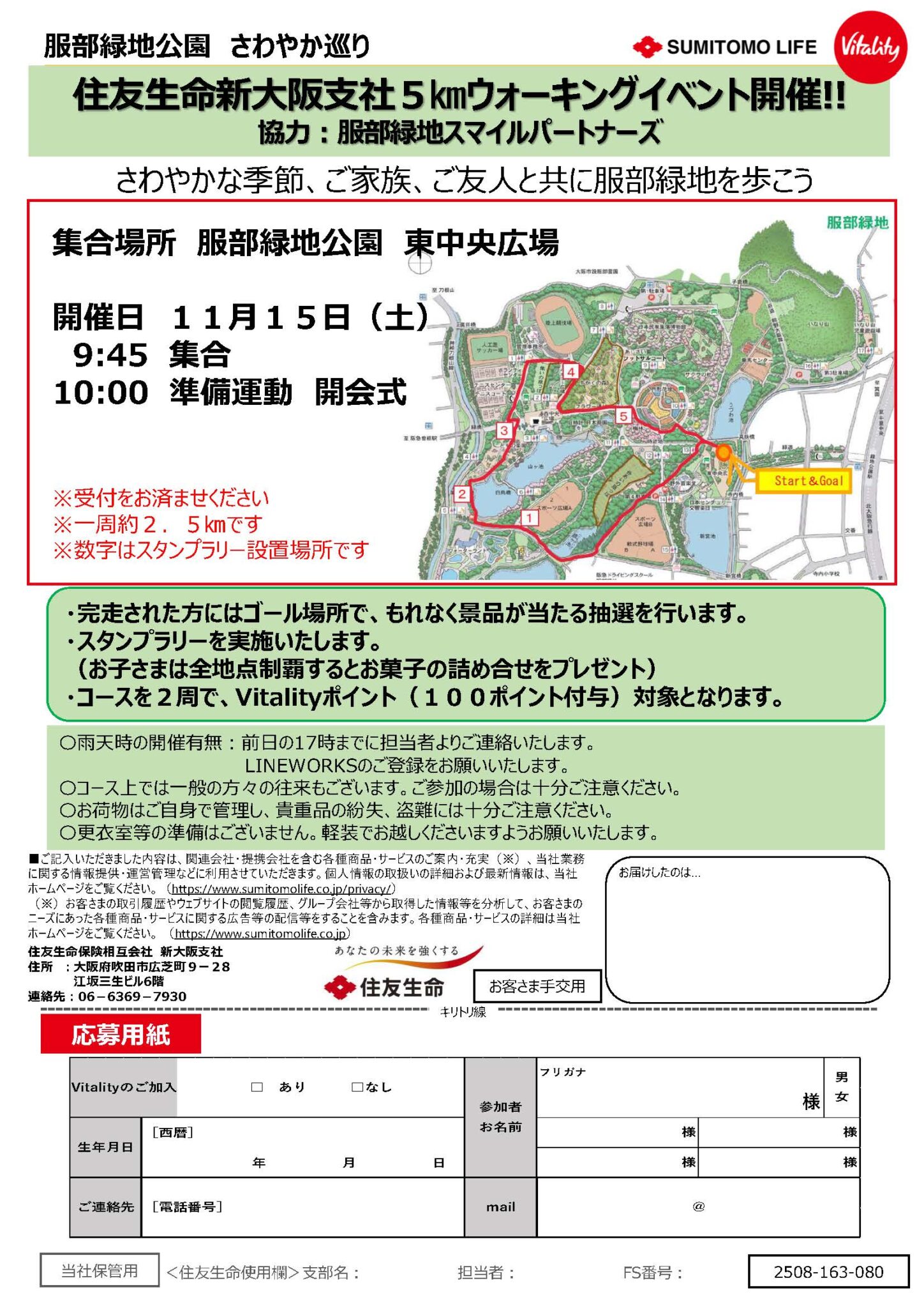 ![]() | 住友生命新大阪支社5kmウォーキングイベント @服部緑地 |